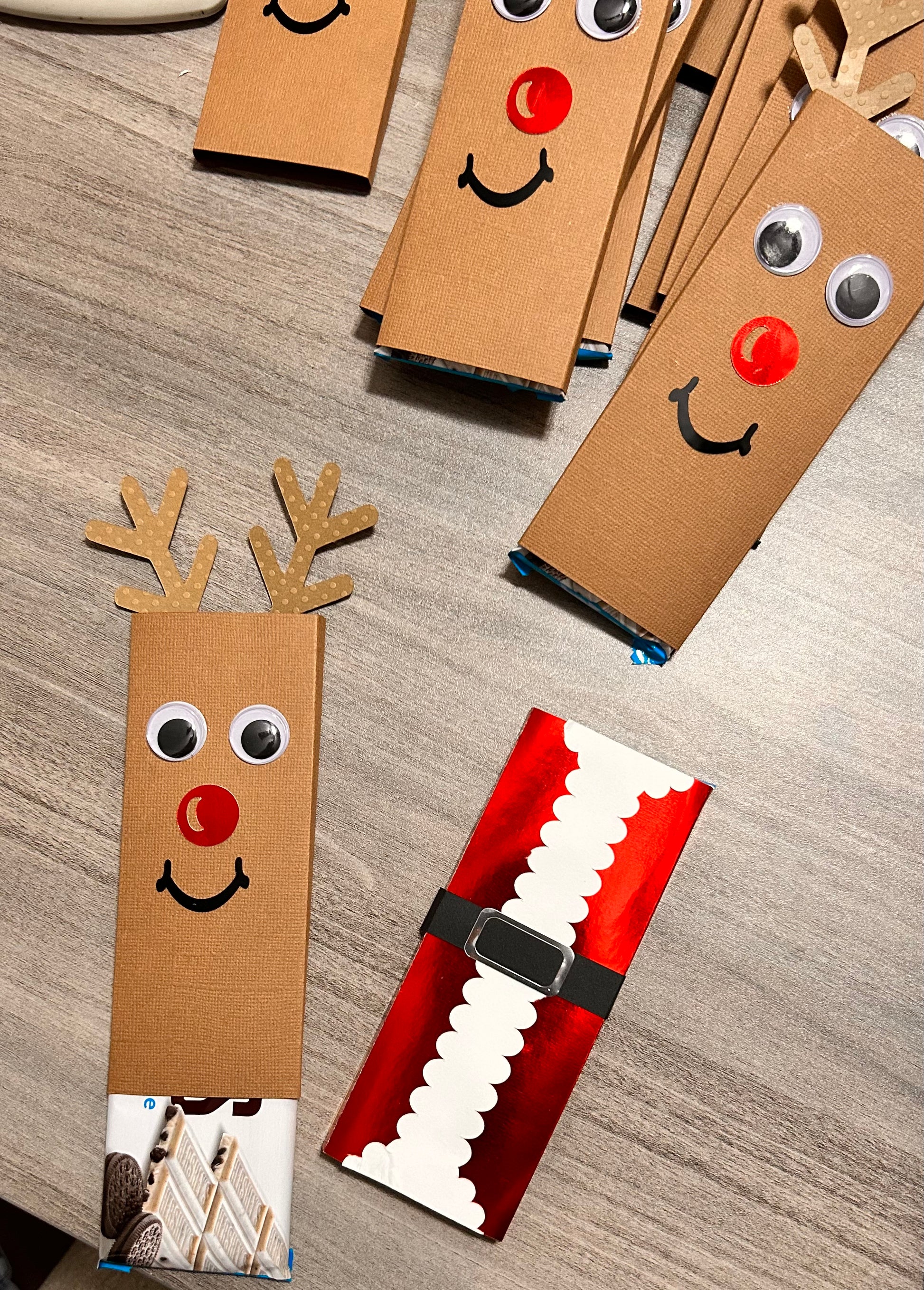 Candy Bar Holder your choice of a Reindeer or Santa Suite. Holder fits a Hersheys Bar